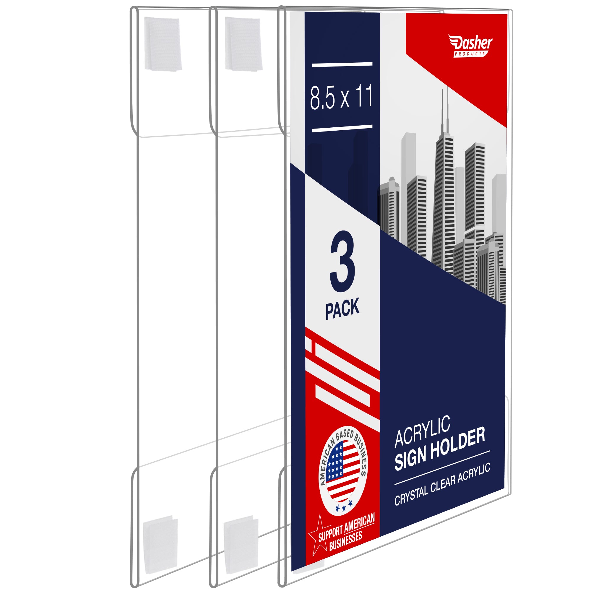 Hassle-Free Installation: Dasher Products provides well-made acrylic frames with genuine 3M adhesives for reliable mounting. Unlike competitors using cheap adhesives, we ensure long-lasting durability and security. No screws, drilling, or tools are needed, making installation quick and easy. Apply to virtually any flat surface like drywall, metal, plastic, wood, or glass. Perfect for busy environments where a clean, professional look is needed without the hassle of traditional hardware