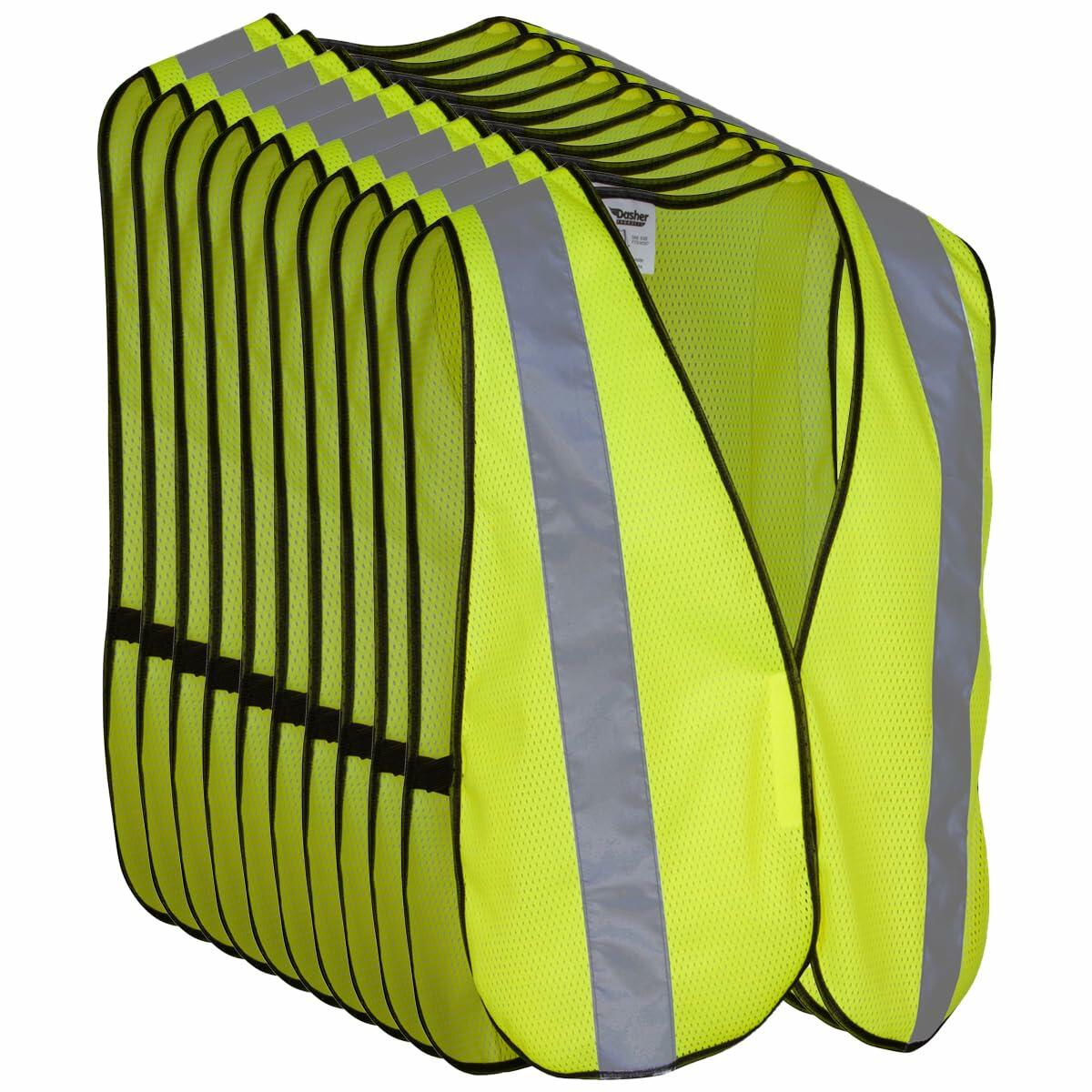 Safety Vest with High Visibility - 2 Inch Reflective Strips, Bright Neon Yellow, Breathable Polyester Mesh Fabric, ANSI ISEA Class Unrated, Hi Viz All Day and Night (10 Pack - XL-XXXL)